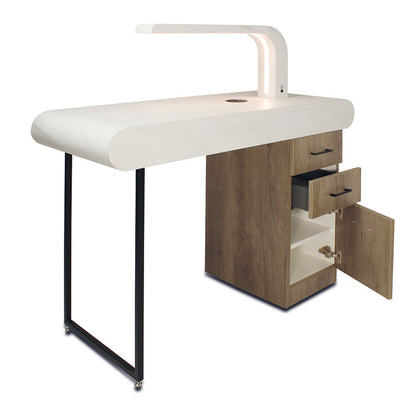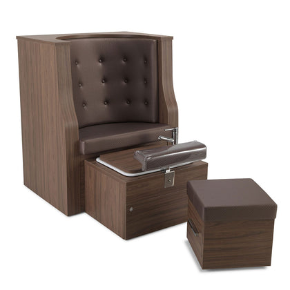 من المؤكد أن البساطة المميزة لكرسي بادكير دريم ستضيف عامل نجاح باهر إلى أي صالون. وظيفتها الرائعة تحول كل زيارة عميل إلى تجربة استرخاء. يحتوي الحوض المدمج على زر ضغط للتصريف وصنبور ذراع واحد مع خرطوم قابل للسحب. وسادة القدم قابل للتعديل لراحة العميل. قم بتخصيص مظهر محطة باديكير باختيار أي خامة من الجلود و التخشيب من مجموعة رم, مع المنتجات الإضافية المتاحة بما في ذلك رابط تخزين دريم المستقل ومقعد دريم بدي لراحة الفني.