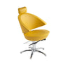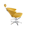 Revolving styling chair with reclinable backrest and adjustable headrest.